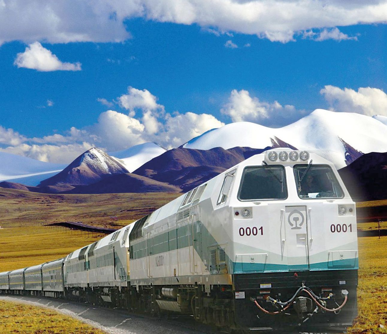 Die Tagesetappe von Golmud nach Lhasa zählt zu den spektakulärsten und höchst gelegenen Bahnstrecken der Welt. Die Ausblicke auf eine fantastische Landschaft mit Geröllwüsten oder auf schneebedeckte Berge in den Hochplateaus sind einmalig. (A)